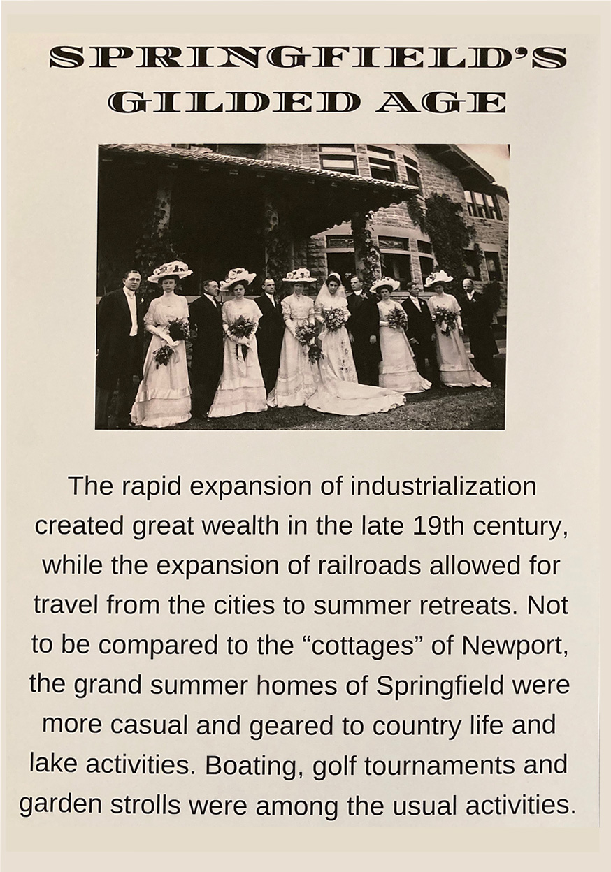 Springfield’s Gilded Age is an exhibition of photographs that explores the grand estates of 19th century Otsego Lake. Meet the people who lived there and view life on the lake in this period. The families of the grand houses enjoyed an active outdoor life of horseback riding, boating, golfing, tennis and croquet. In addition to the outdoor activities, more solitary activities such as reading and leisurely strolls through the gardens were an important part of 19th century life on Otsego Lake. Dinner parties followed by a game of billiards, with cigars and brandy for the men, were routine. Luncheons and card parties were also popular and the more artistic ladies enjoyed sketching and embroidery.