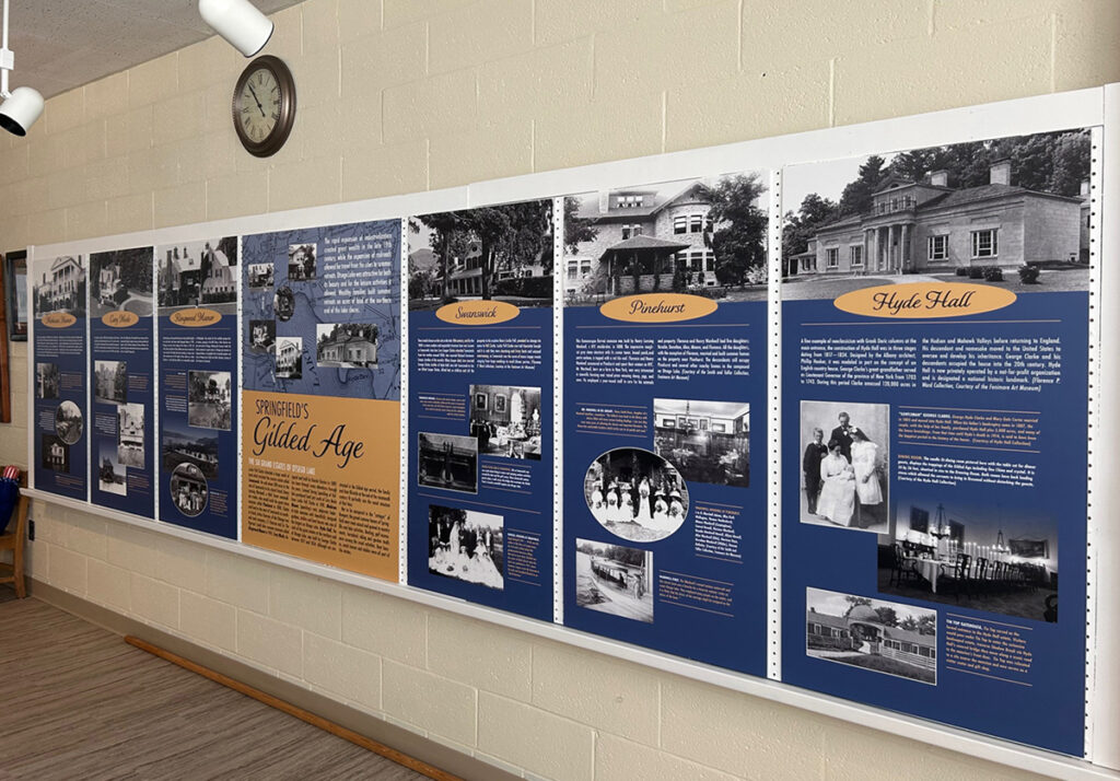 Springfield Past is a display that is complementary to the Gilded Age, the Timeline and Springfield Today. The display includes over fifty photographs about the Town of Springfield’s past, blending into the present. The map which accompanies the photographs is coded to show where schools, businesses, estates, churches and recreation were located, some remaining today,some […]